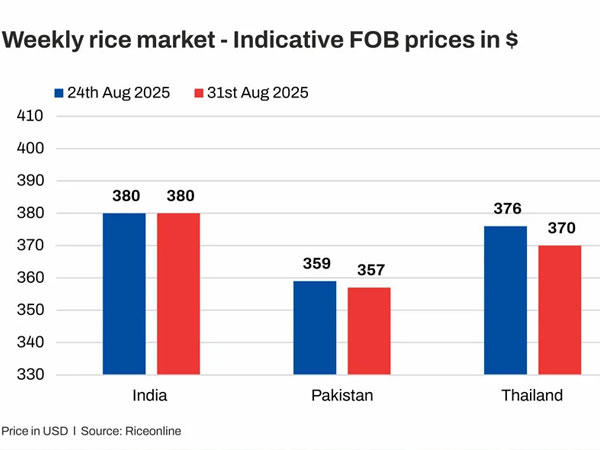 Global rice export prices (indicative FOB) slid w-o-w during the week ending 31 August 2025