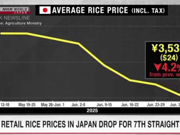 Retail rice prices in Japan have fallen for seven weeks in a row, on the back of wider availability of cheaper supplies of the staple grain from government stockpiles.
