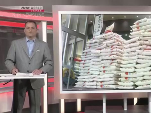 The average price of a 5-kilogram bag declined more than 3 percent from the previous week to 3,672 yen including tax, or about 25 dollars. But that is still about 63 percent higher than a year earlier.