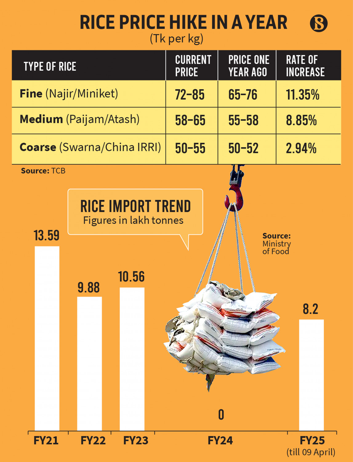 Rice prices remain high despite the resumption of imports last November and a fresh supply from the Aman harvest. Since November, the country has imported 8.20 lakh tonnes of rice, yet retail prices are among the highest on record.