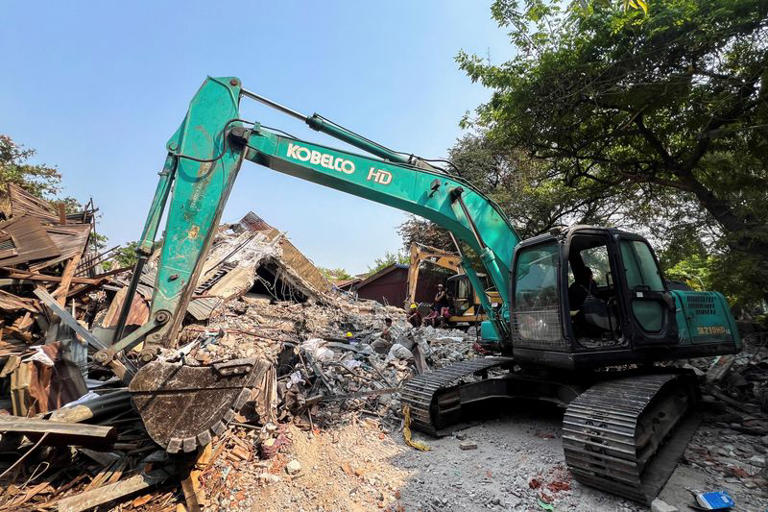 A person operates machinery following a strong earthquake, in Mandalay, Myanmar, March 31, 2025.